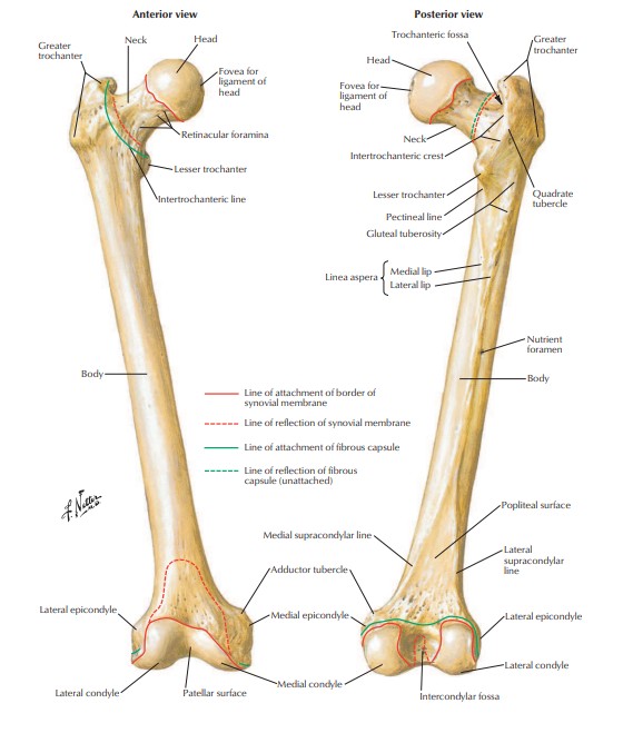 Tulang terbesar. Memiliki Caput femoris, Trochanter major & minor, serta Condylus .