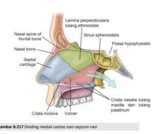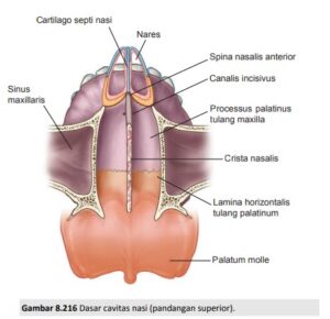• di posterior, terutama vomer dan lamina perpendicularis tulang ethmoidale;