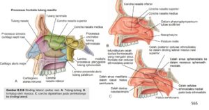 Dinding lateral tiap cavitas nasi kompleks dan dibentuk oleh tulang, tulang rawan, dan jaringan lunak. Penyangga tulang untuk dinding lateral  diperoleh dari:
