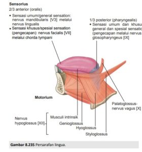 – N. glossopharyngeus (IX) → rasa dari sepertiga posterior lidah