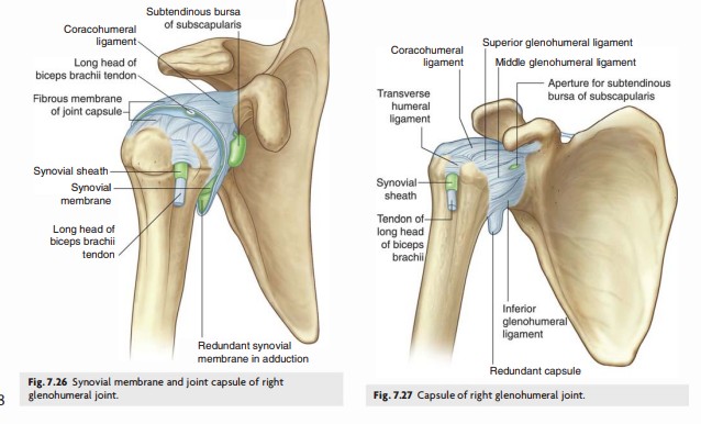 Sendi Glenohumeral (Art. Humeri): Sendi peluru (Ball & Socket) yang memungkinkan gerakan ke segala arah (triaksial). Diperkuat oleh ligamen glenohumeral dan otot Rotator Cuff (Supraspinatus, Infraspinatus, Teres Minor, Subscapularis).