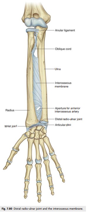 Struktur: Radius berputar mengelilingi ulna. Dihubungkan juga oleh Membrana Interossea (Syndesmosis) yang menyalurkan gaya.