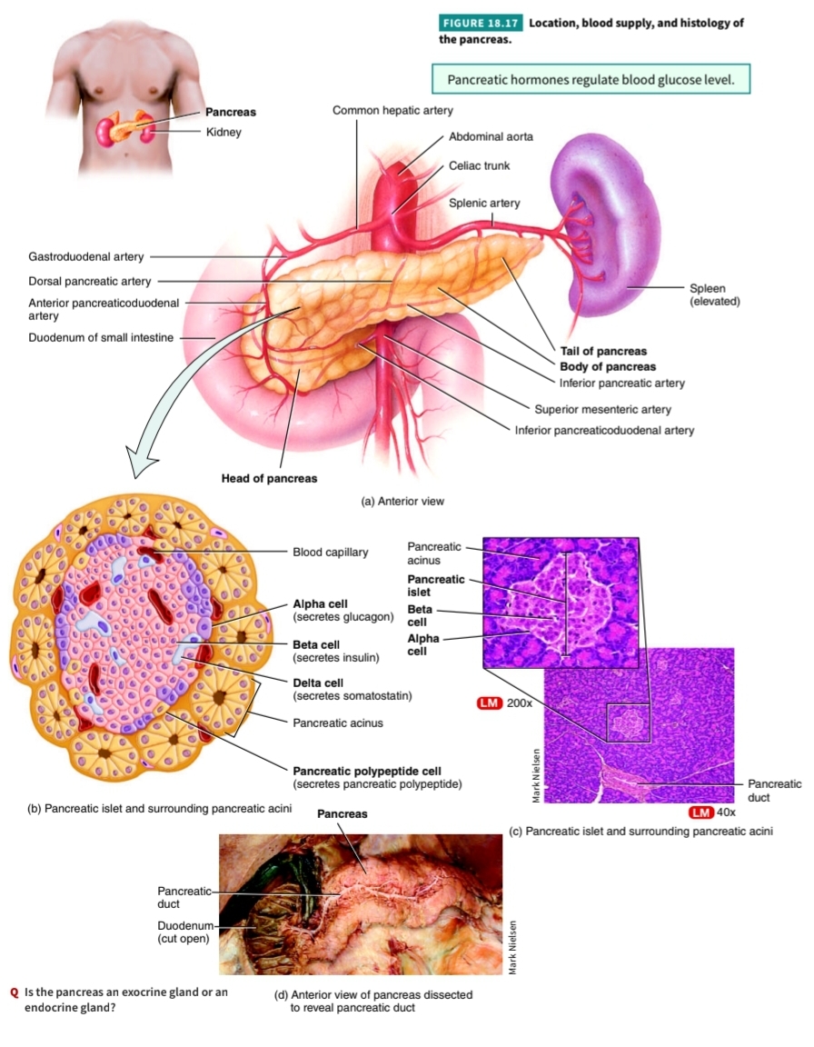 Pancreas merupakan kelenjar campuran, artinya memiliki fungsi endokrin sekaligus eksokrin. Organ ini terletak di lekukan duodenum (bagian pertama dari intestinum tenue atau usus halus).