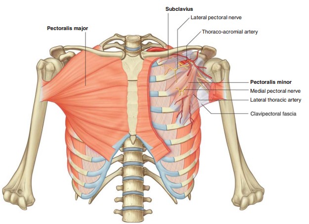 • M. Pectoralis Major: Otot dada besar, berfungsi untuk adduksi, antefleksi, dan endorotasi lengan atas .