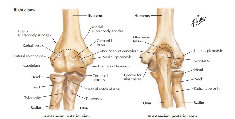 Bagian bawah terdapat Epicondylus medialis & lateralis, serta Trochlea .